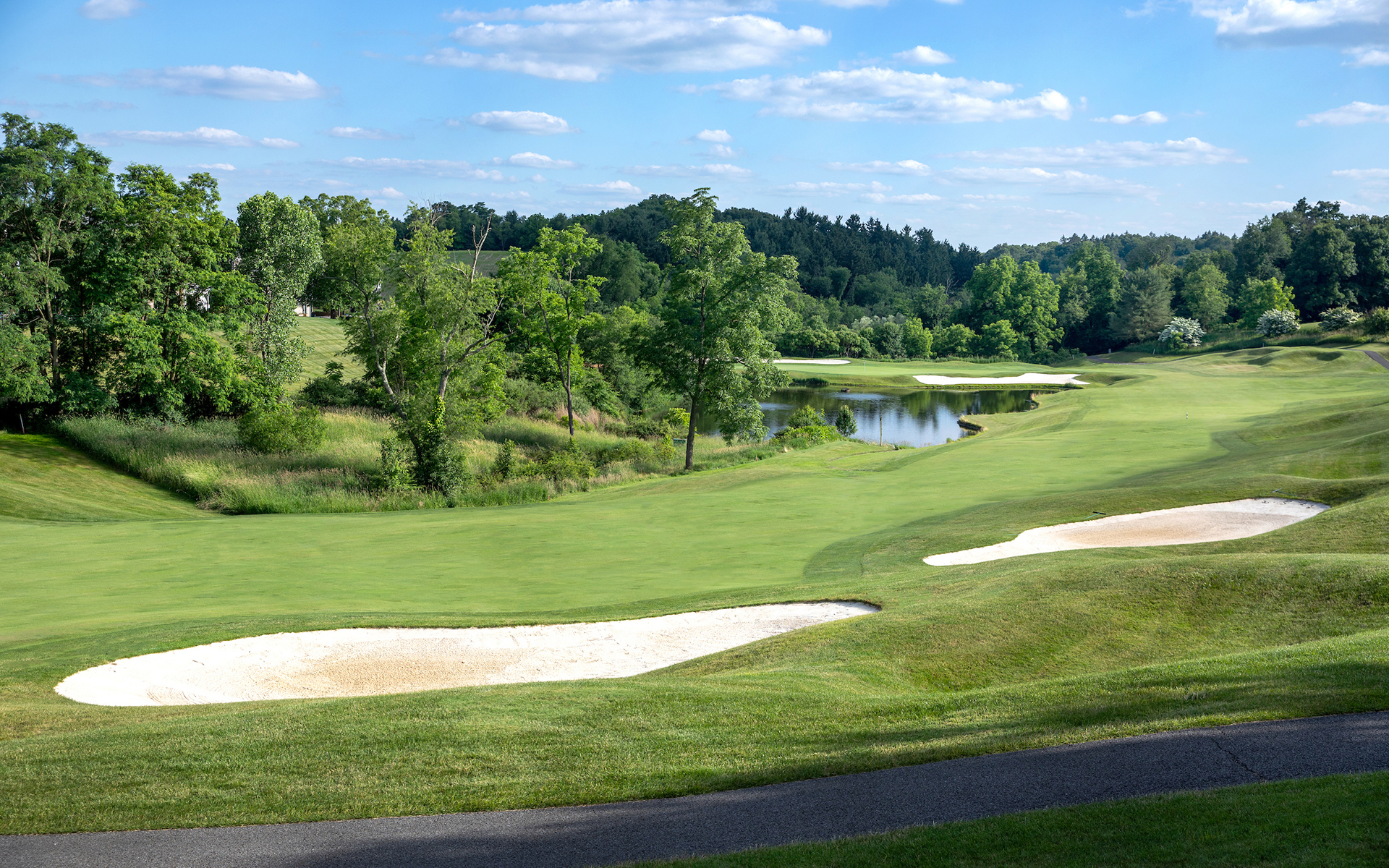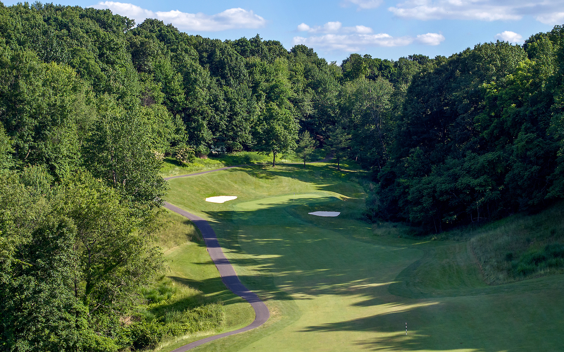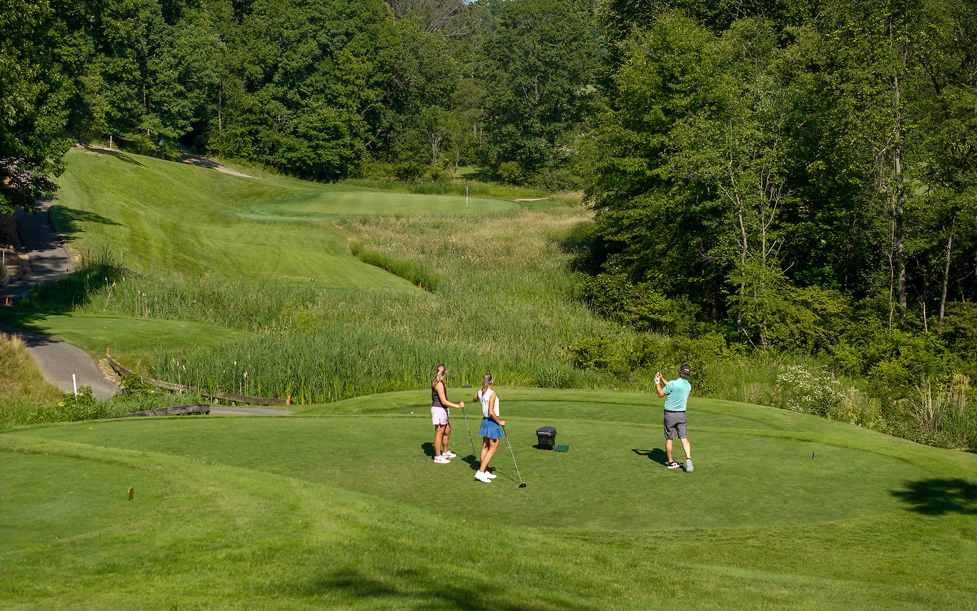 The Orchard Course, an unforgettable experience designed by Arnold Palmer, surrounds the Treesdale Farms Lake with beautiful views and challenging landscapes before traversing to its summit, offering players outstanding views of the area.